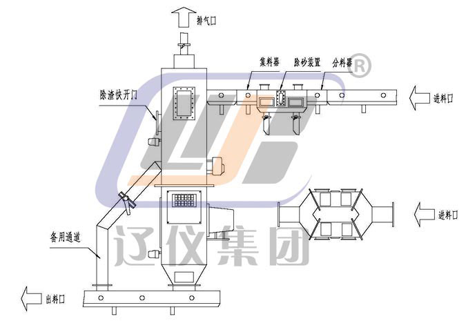 新鮮氧化鋁經風動溜槽進入本系統。經過分料器將物料分為兩路,分別進入除砂裝置,進行除砂后匯入集料器進入集料箱,在此除渣。氣體由排氣口引出,物料堆積到料位計時,開關控制給料器給料,沖板流量計開始計量,流量積算儀顯示瞬時流量、累計流量。流量大小可根據實際生產需要通過流量調節器設定,給料器自動調節。當集料箱無料時,料位開關控制給料器自動關閉。該過程消除了高壓風對沖板流量計的影響。物料經沖板流量計的計量后進入下溜槽,直到凈化系統。當下溜槽發生堵料堆積到下料位計時,料位開關控制給料器關閉,避免下溜槽物料越堆越多,保持溜槽順暢,使生產有效均衡進行。