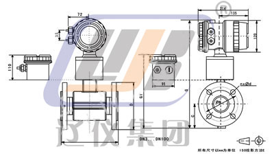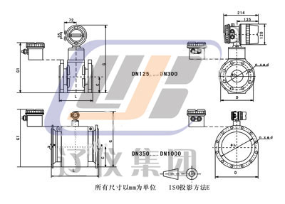 2)接地方式為接地電極(標(biāo)準(zhǔn)配置)時,DN125-1000口徑,尺寸L不變。